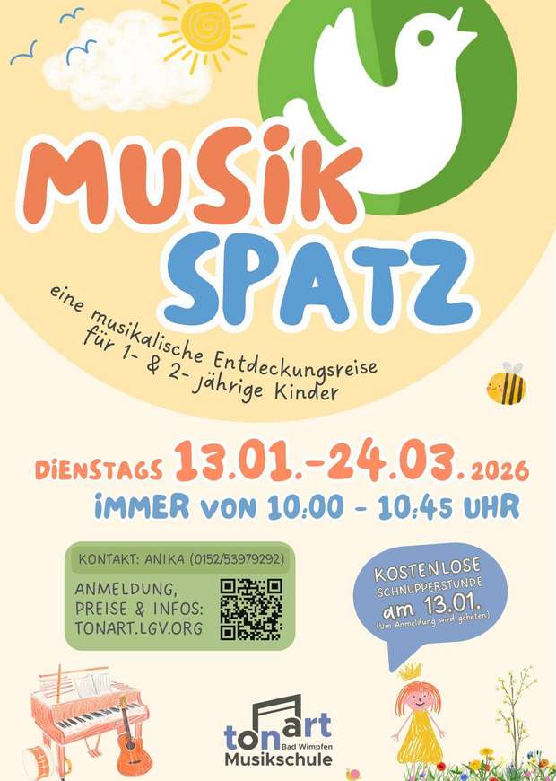 - Ort: Musikschule tonart, Mathildenbadtraße 48, Bad Wimpfen